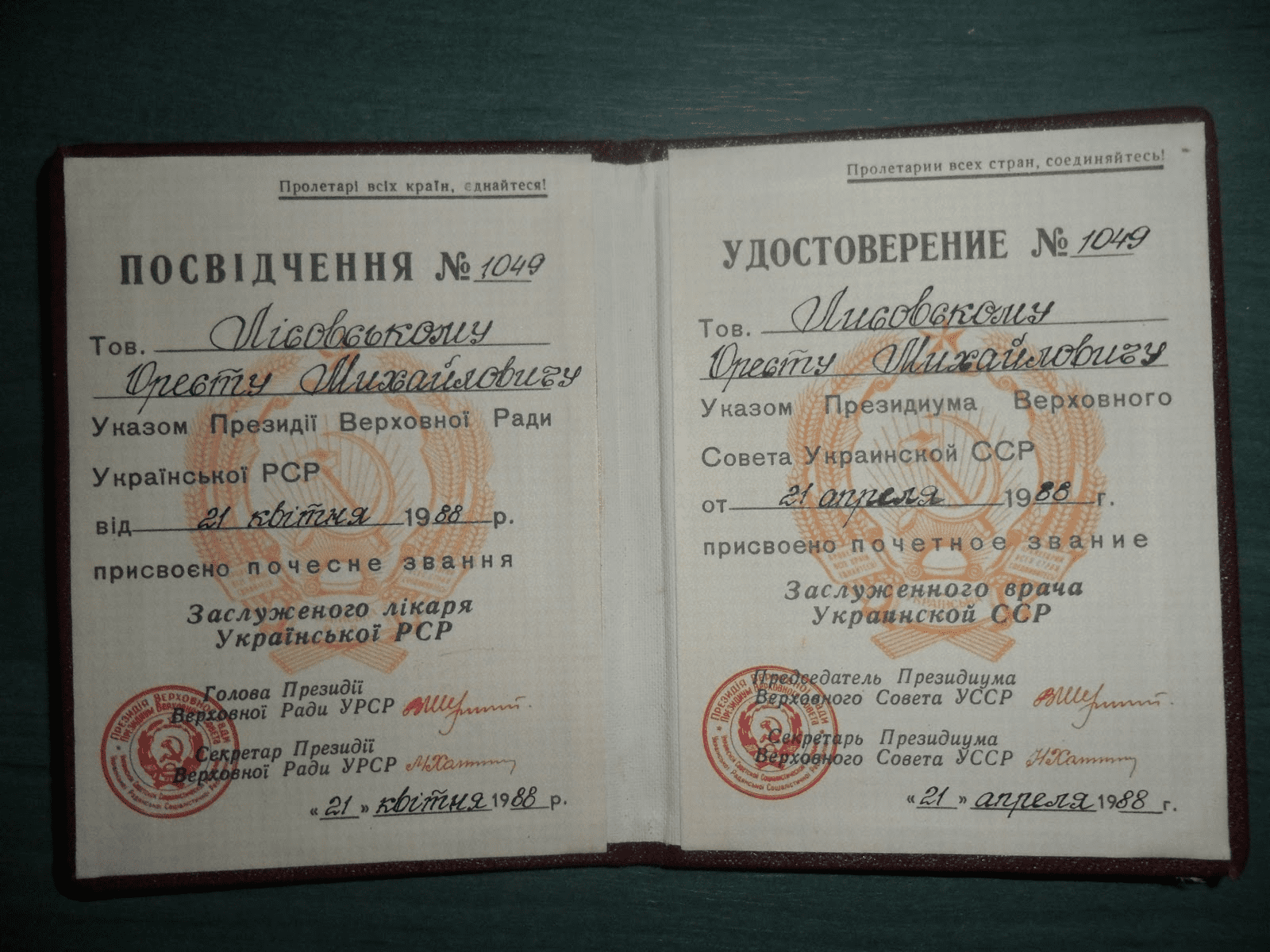 21 апреля 1988 года заслуги Ореста Михайловича Лисовского отмечены званием «Заслуженный врач УССР».