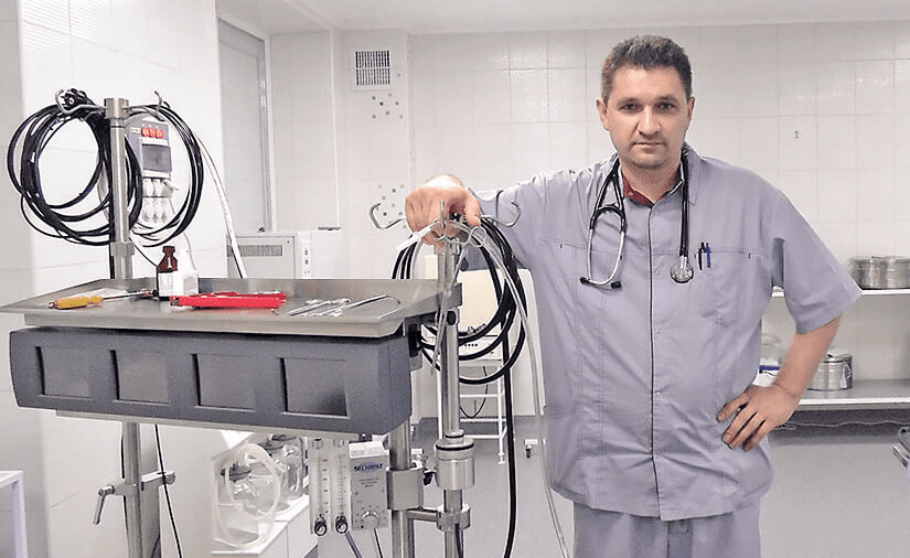 З гордістю пан Андрій розповідає про операційну кардіологічного диспансера, адже це його постійне місце роботи. Нова операційна обладнана сучасною вентиляцією, що фільтрує та знезаражує вхідне повітря. У розпорядження кардіохірургів також є потужні німецькі лампи, що забезпечують якісне освітлення зони операції. Є також апарат штучного кровообігу, наркозно-дихальний апарат та інше обладнання, що потрібно для здійснення складних операцій на серці та судинах.